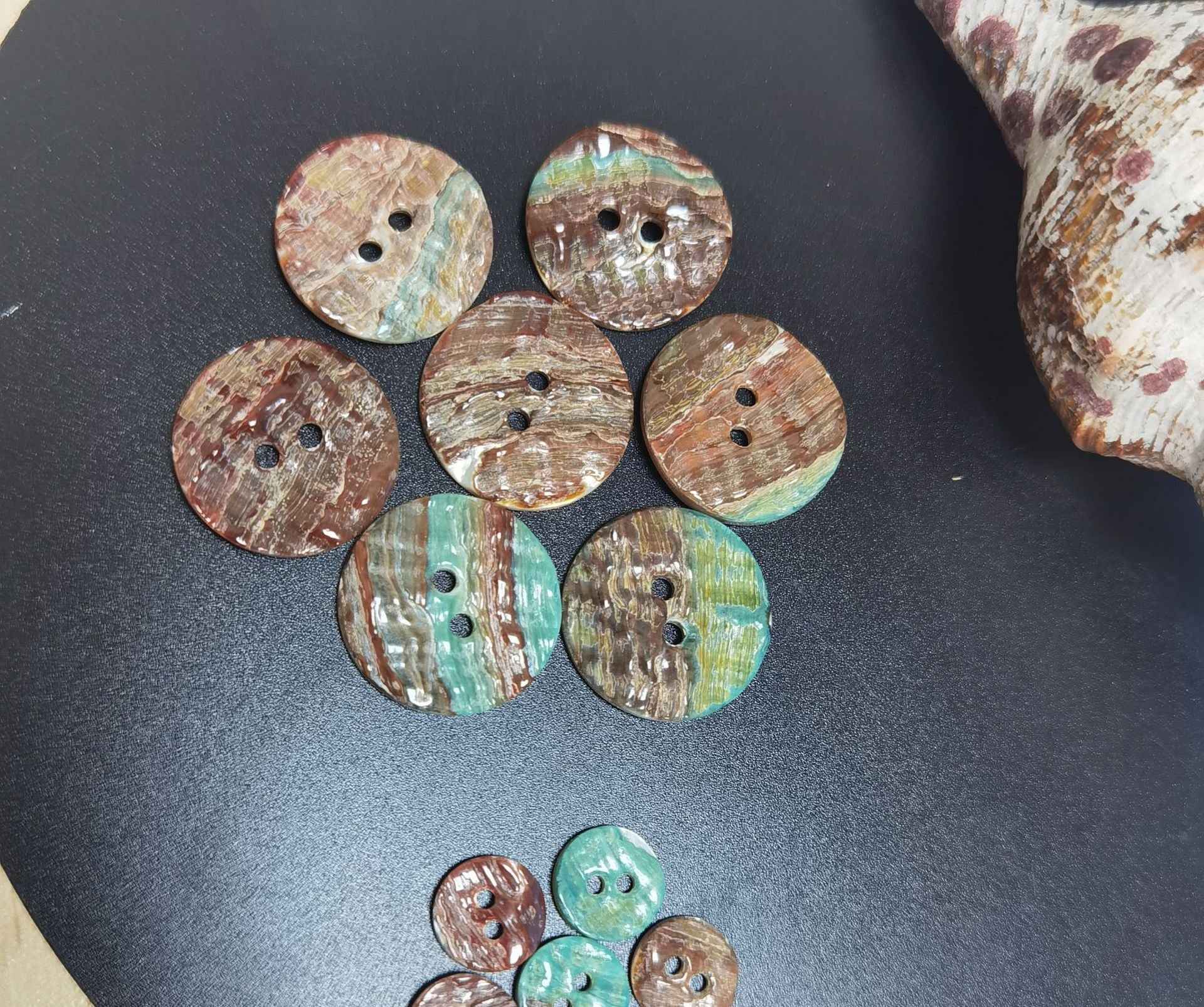 Enhance your knitting and sewing projects with this premium abalone shell button set, featuring nine practical sizes from 14L (9mm) to 40L (25mm). Each button showcases genuine abalone shell with natural iridescence, offering a luxurious touch to garments and accessories.
