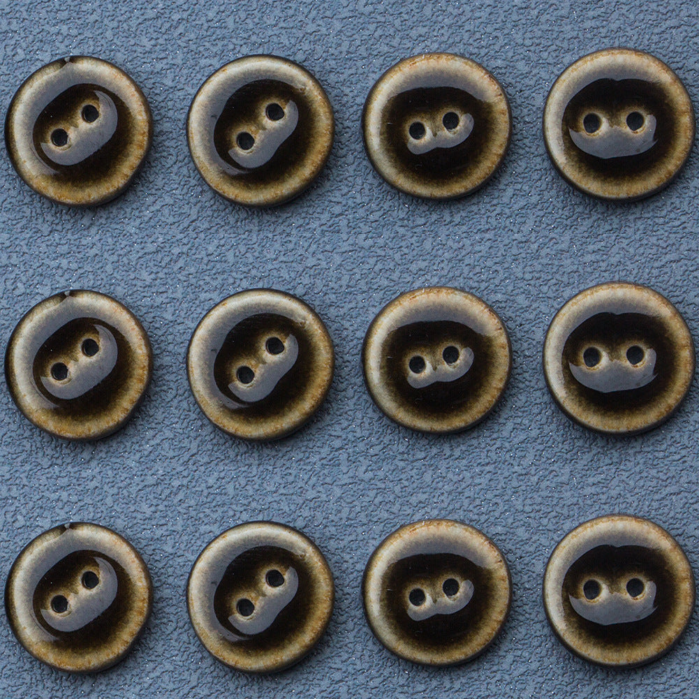 14mm Round 2Hole Black and Brown Handmade Glazed Ceramic Buttons 10pcs