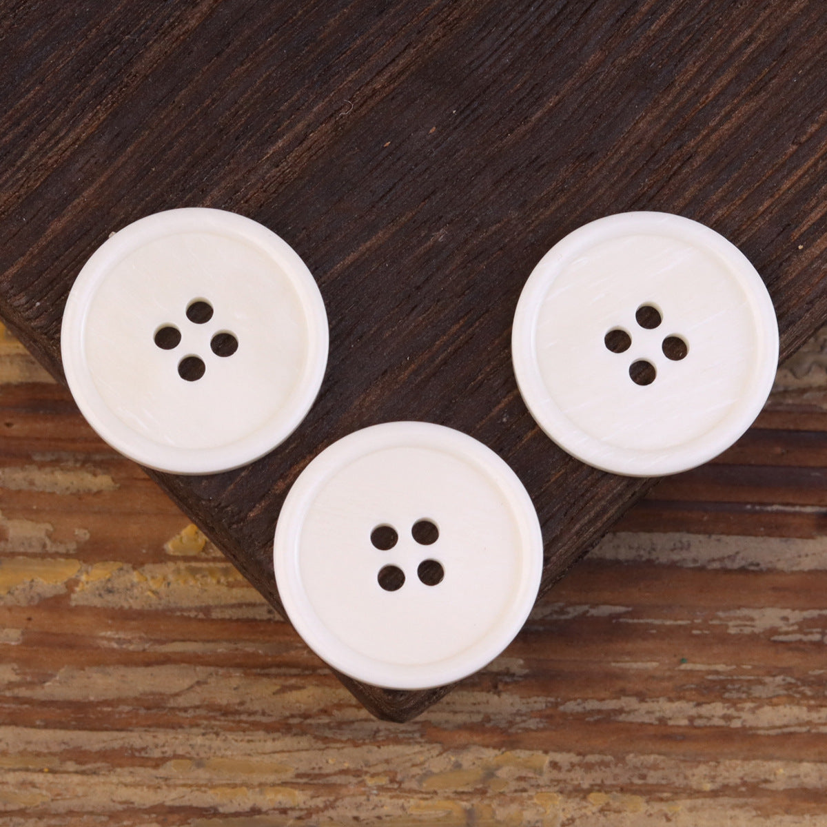 These 15-25mm flat wide-edged four-hole genuine bovine bone buttons are a unique and stylish choice for adding a touch of elegance to your garments. Crafted from real bovine bone, they offer a natural beauty and durability. The flat design and wide edges give them a modern and sophisticated look. Perfect for Japanese-style white windbreakers, coats made of linen or cotton flax, and other outerwear. The four holes make them easy to attach and secure. Let these buttons be the finishing touch to your wardrobe and enhance the style of your outfits.