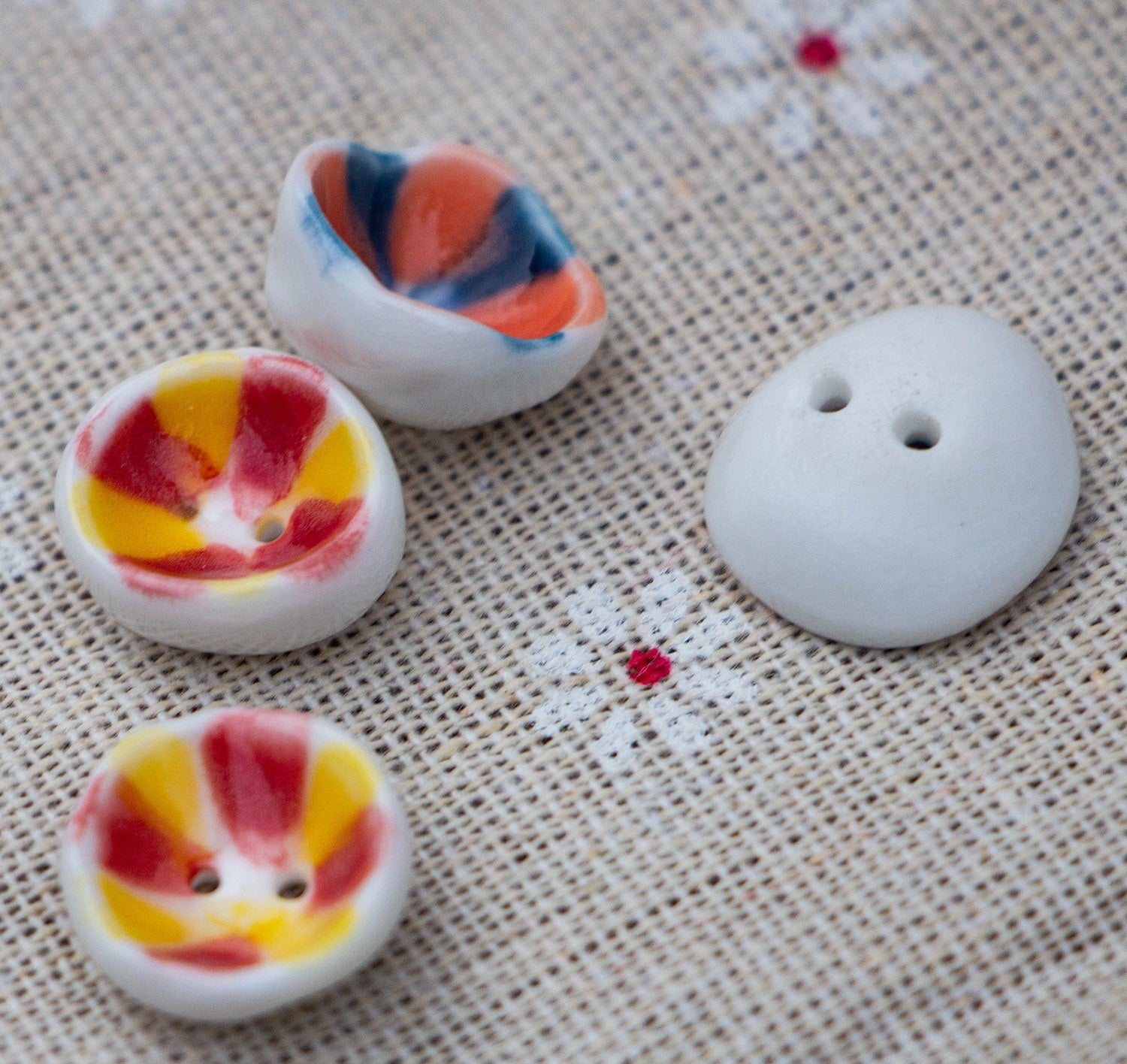 15mm Handmade Bowl-Shaped 2-Hole Ceramic Buttons for DIY Bracelets and Necklace 10pcs