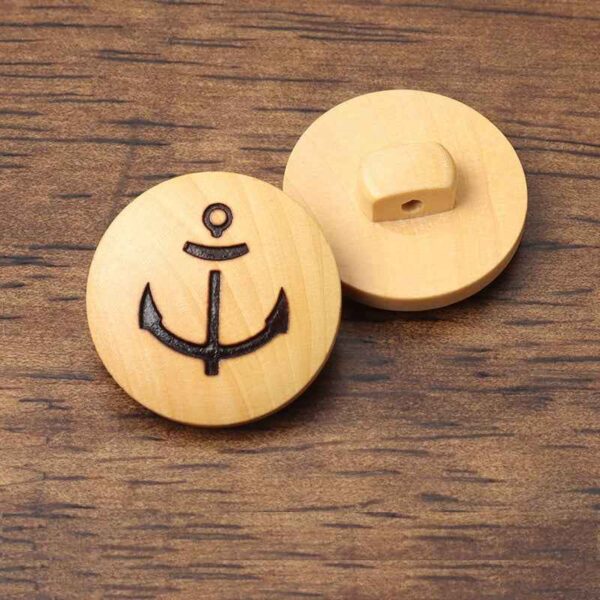 15mm High-Footed Wood Shank Buttons with Laser-engraved Anchor Pattern for Children’s Outerwear and Cardigans 20pcs