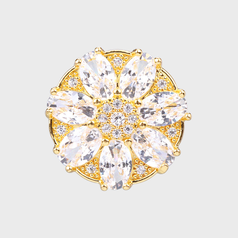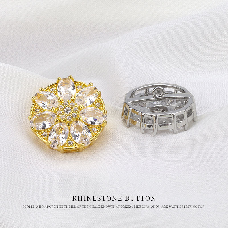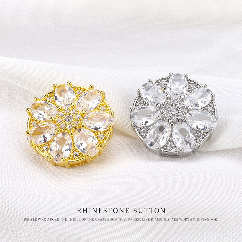 17mm High-End Zircon Seven-Leaf Flower Diamond-Inlaid Metal Button – Decorative Button for Women’s Suits 2pcs