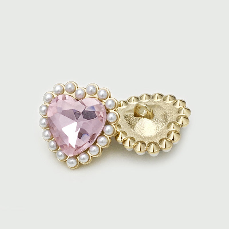 20mm Captivating Pink & White Heart-shaped Metal Buttons with Diamonds and Pearls 12pcs
