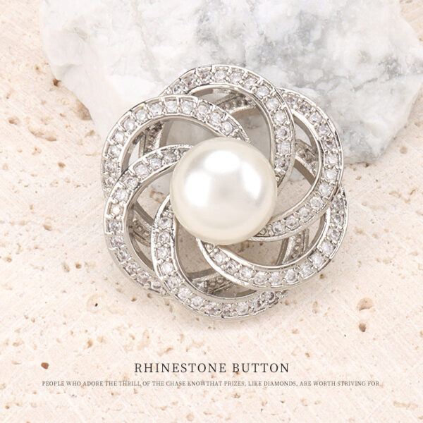 22.5mm Stacked Circular Hollowed Flower-Shaped Pearl and Zircon Copper Button – Buttons for Suit Jackets, Fur Coats, and Windbreakers 2pcs