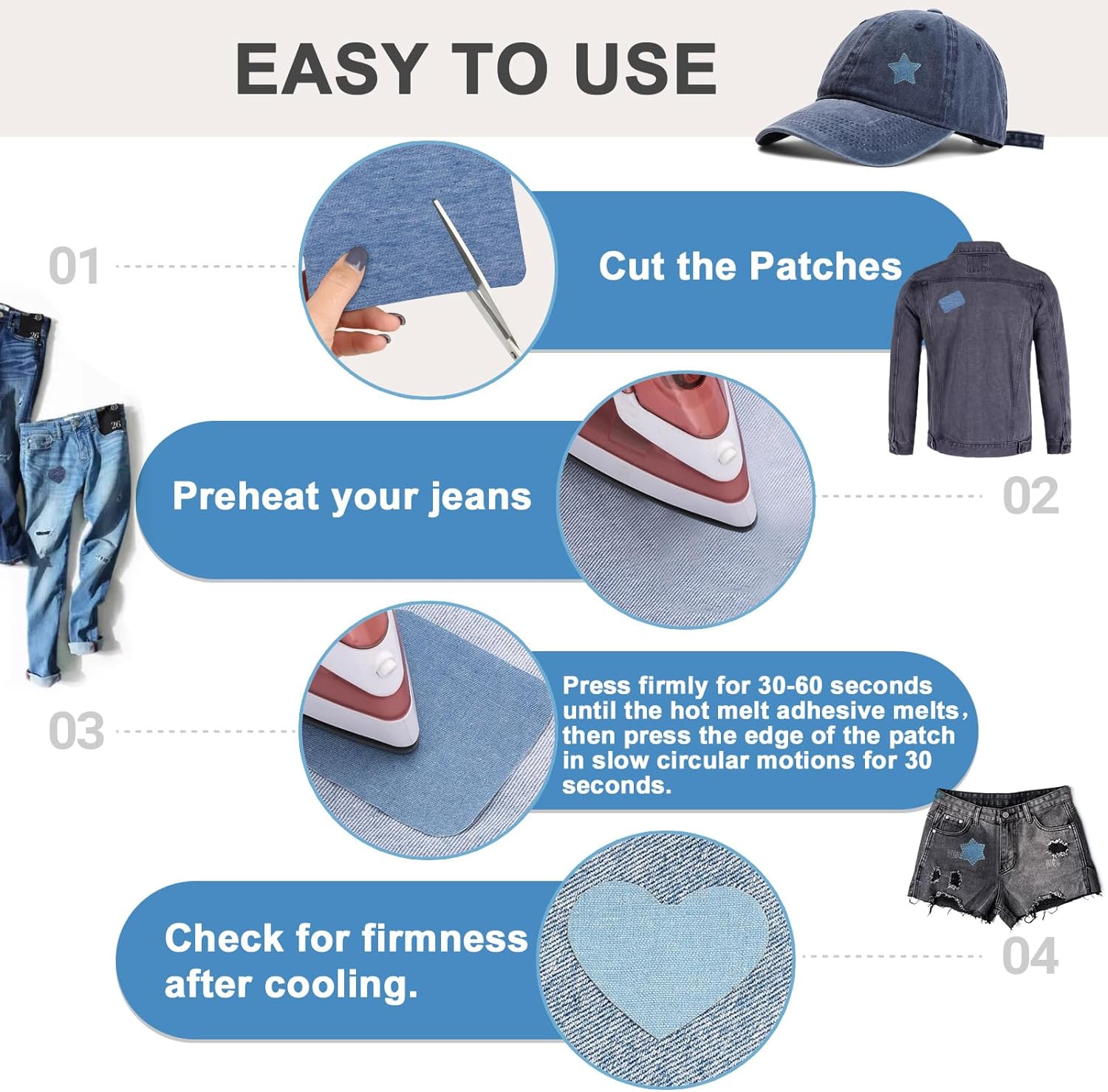 25 Pieces Denim Iron-on Patches Repair Kits for Clothes Jeans25 Pieces Denim Iron-on Patches Repair Kits for Clothes Jeans