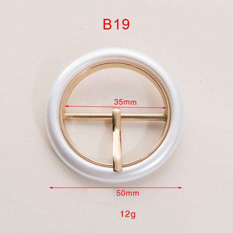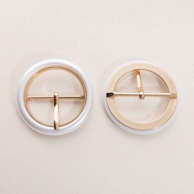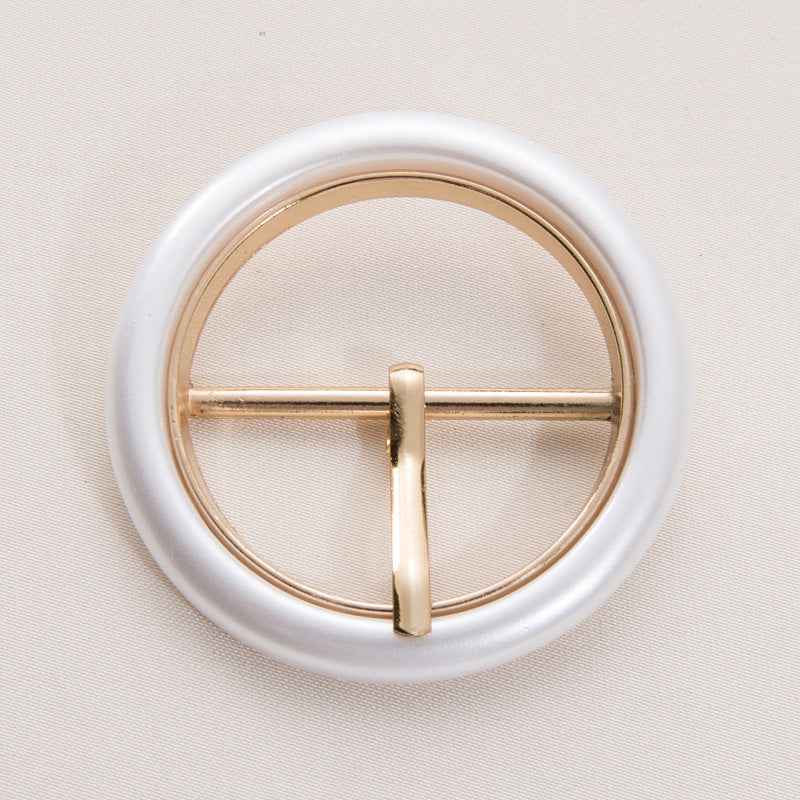 Enhance your fashion creations with this sophisticated 50mm pearl white resin and metal round belt buckle, featuring an adjustable pin for versatile styling. Perfect for belts, handbags, and DIY accessories, this elegant piece combines durability with timeless charm.