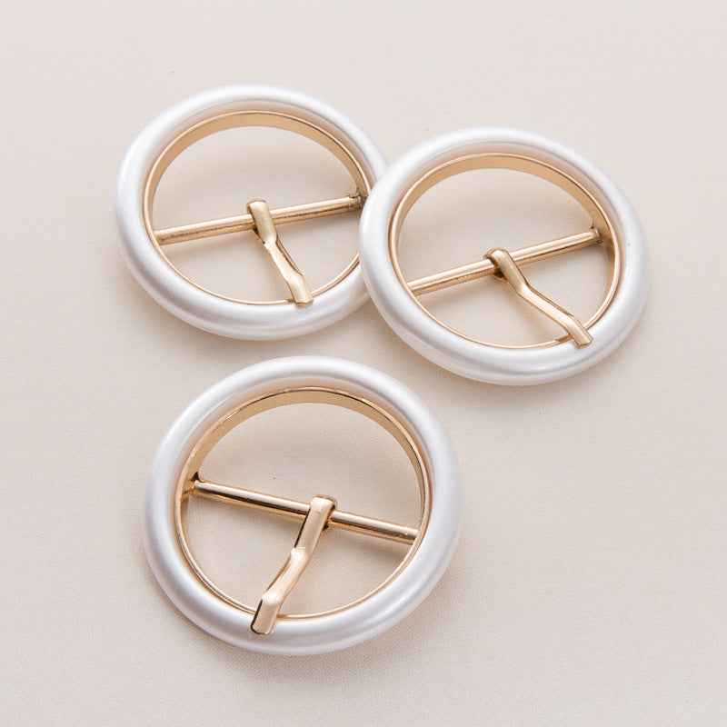 50mm Pearl White Resin & Metal Round Adjustable Belt Buckle – Elegant DIY Accessory for Belts & Fashion 20pcs