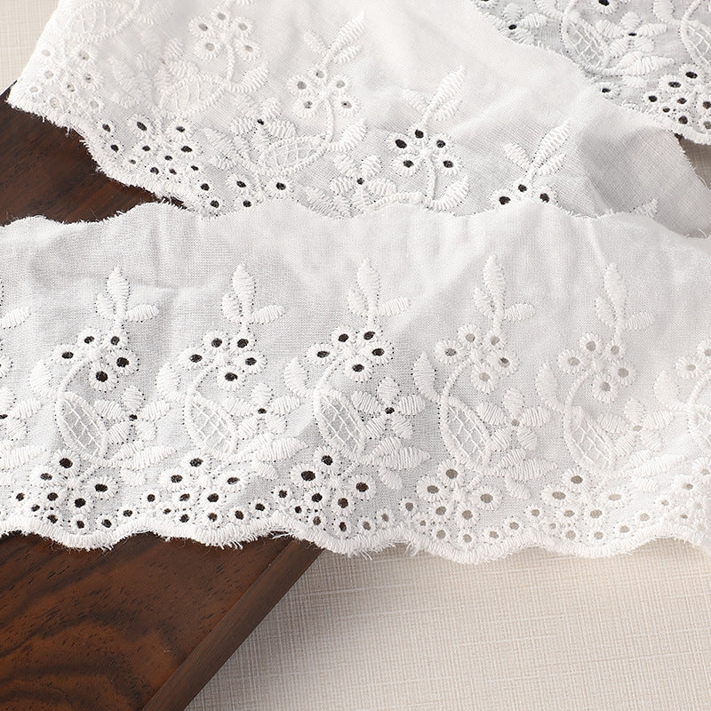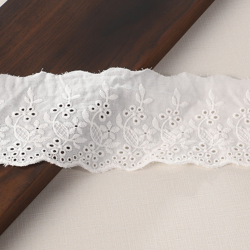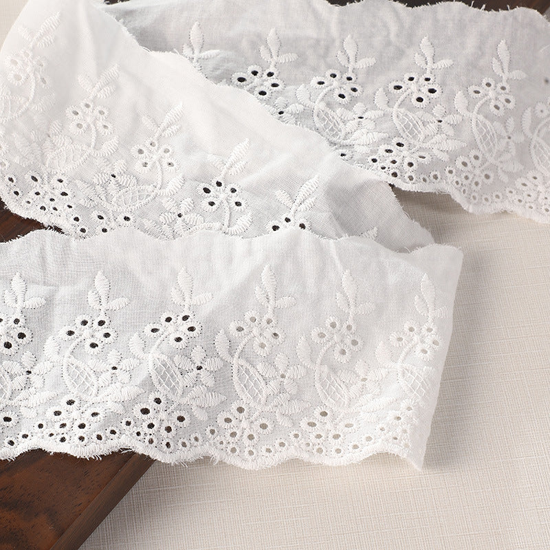 Enhance your sewing and crafting projects with our 70mm wide Cotton Lace Trim. This high-quality trim features intricate embroidery and a delicate cotton texture, making it perfect for decorating clothing, accessories, and home decor. The lace is versatile and can be used for a variety of applications, including dress collars, skirt edges, cuffs, and more. Available in multiple colors and widths, this lace trim is easy to work with and adds a touch of elegance to any project.