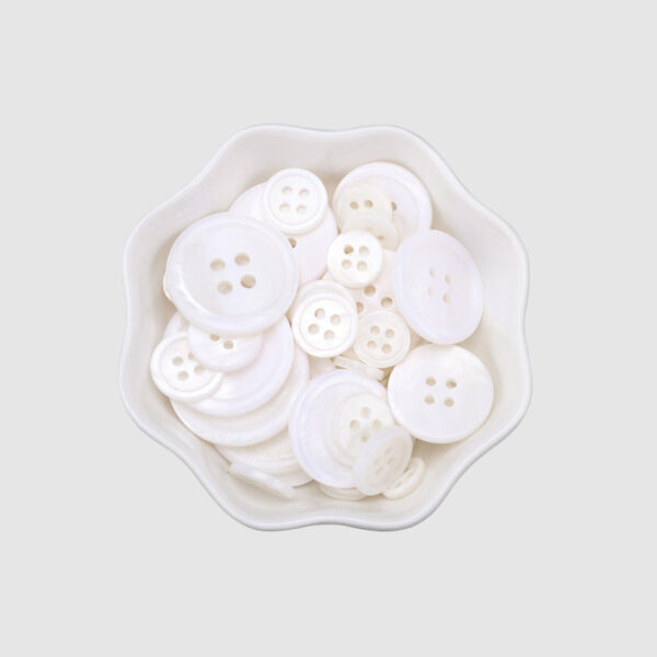 These 9 – 25mm round 4-hole white pearl shell buttons are a classic and elegant choice for shirts and suits. The buttons are made from genuine pearl shell, which gives them a beautiful natural luster and texture. The white color is clean and timeless, making these buttons suitable for a wide range of styles and occasions. The two holes make them easy to attach and ensure a secure fit. Whether you’re dressing up for a formal event or adding a touch of sophistication to your everyday wardrobe, these pearl shell buttons are the perfect choice. They are durable and long-lasting, ensuring that they will stay in place and look great for years to come. Let these buttons be the finishing touch to your outfit.