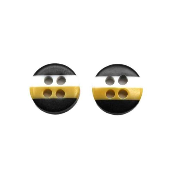 Add a bold and modern touch to your designs with our 9mm Black, White & Yellow Round 4-Hole Resin Buttons. These buttons feature a striking combination of black, white, and yellow, creating a vibrant and eye-catching look perfect for shirts, blouses, and lightweight garments. Made from high-quality resin, they are lightweight, durable, and gentle on fabrics, ensuring long-lasting use. The 4-hole design provides a secure fit, while the compact 9mm size is ideal for adding subtle yet impactful details. Whether you’re crafting for fashion or DIY projects, these buttons are a versatile and stylish choice. Elevate your creations with these dynamic and colorful buttons!
