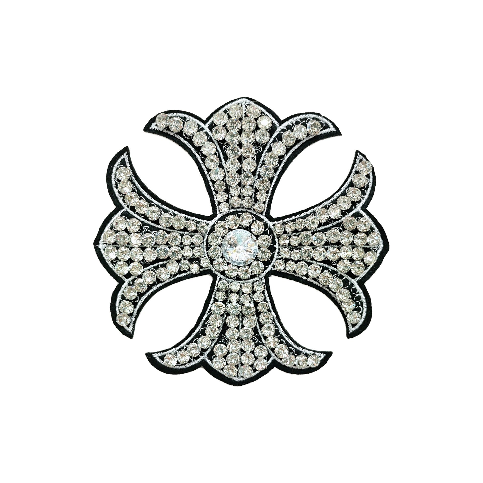 Hand-Beaded Vintage Chrome Hearts Cross Applique – Rhinestone-Embellished 3D DIY Patch 5 Pack