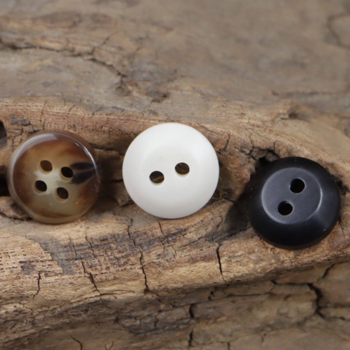 These black and white fish-eye resin buttons are a stylish and practical addition to any commuter shirt. The unique fish-eye design adds a touch of visual interest and modernity to your outfit.