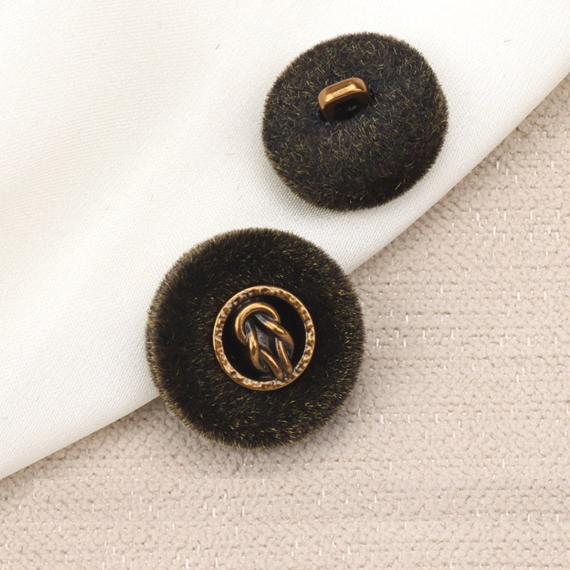 These black and brown flocked metal combination buttons with shanks are a versatile and stylish choice for your garments. The combination of flocked and metal elements creates a unique texture and look. The flocking provides a soft, luxurious feel, while the metal ensures durability. With the added handles, they are easy to attach to various pieces of clothing such as coats, sweaters, or blouses. The black and brown colors offer a classic and sophisticated palette that can effortlessly match different fabric colors and styles. Whether you’re aiming for a casual or a more formal look, these buttons will add a touch of elegance. They are not only decorative but also practical, making them a great addition to your sewing projects or for updating the look of your existing wardrobe items.