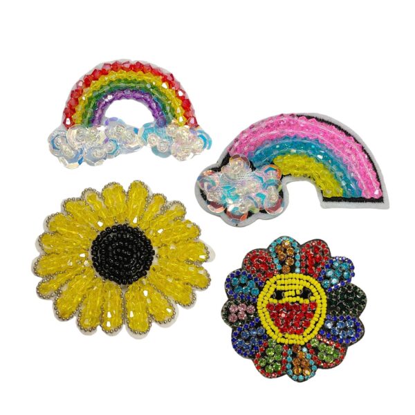 Cartoon Hand-Beaded Rainbow Sunflower Applique – Crystal Rhinestone Chain Patch for Clothing, Shoes, and Hats 4 Pack