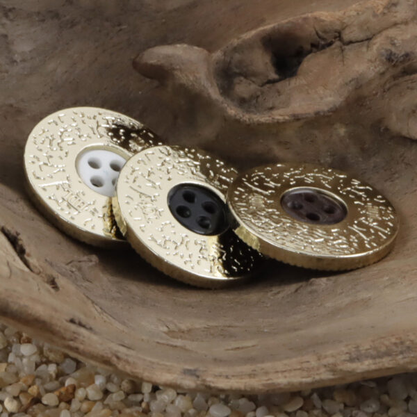 These round four-hole double-sided alloy resin two-tone buttons are an excellent choice for high-end suit jackets and coats. The round shape is classic and timeless, adding a touch of elegance. The four-hole design ensures secure attachment and easy sewing. The double-sided alloy and resin combination offers a unique and luxurious look. One side may feature a shiny alloy finish for a sleek appearance, while the other side showcases a beautiful resin texture or color, adding depth and dimension. The two-tone effect creates a visual interest that sets your garment apart. They are durable and of high quality, suitable for the finest suits and coats, enhancing their overall aesthetic and making a statement of sophistication and style. Whether it’s for a formal business event or a special occasion, these buttons will add that extra touch of elegance and refinement to your outfit.
