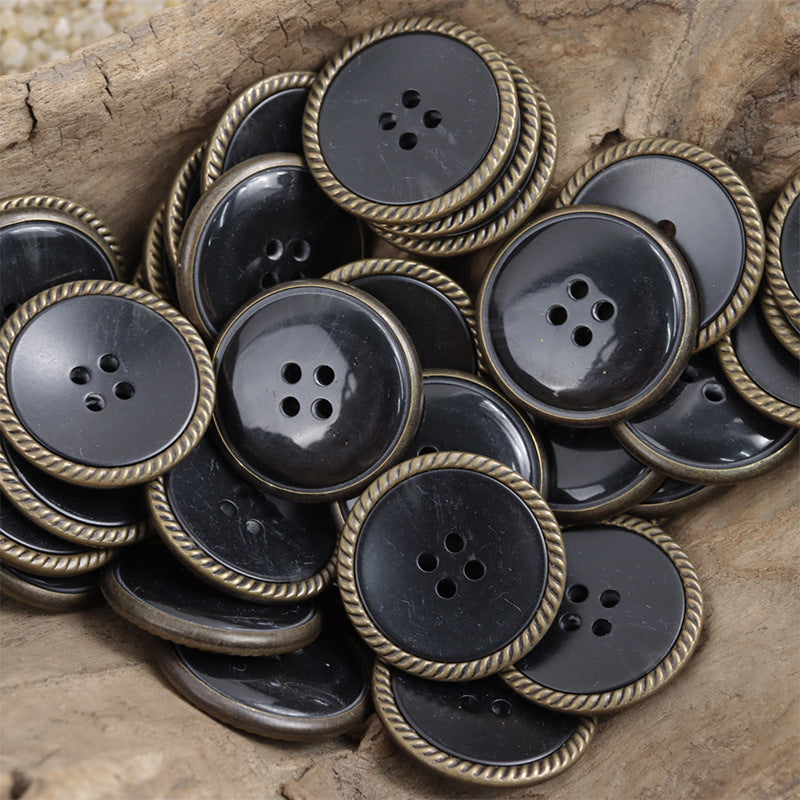 Round 4-hole Edge-locked Resin Buttons with Imitated Ox-horn Pattern – Perfect for Vintage Black Coats and Trench Coats – 20pcs