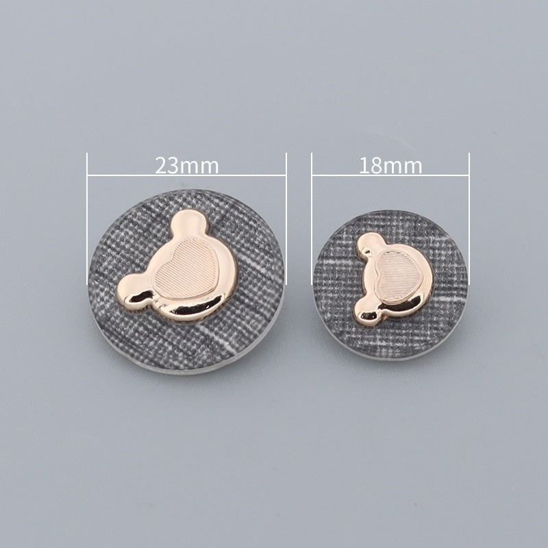 These 18/23mm buttons are specially designed for children’s sweater cardigans. Made of high – quality metal, they are durable and shiny. The buttons come in three attractive colors – golden, silver, and black. The golden and silver ones add a touch of luxury and elegance, while the black one provides a classic and stylish contrast. The bear – shaped design is extremely cute, making these buttons perfect for kids. The little bear figures are well – crafted with clear details. With shanks attached, they are easy to sew onto the sweater fabric. These buttons not only serve as fasteners but also as lovely decorative elements. They can bring a lot of fun and charm to children’s clothing, making the sweater cardigans more appealing and unique.