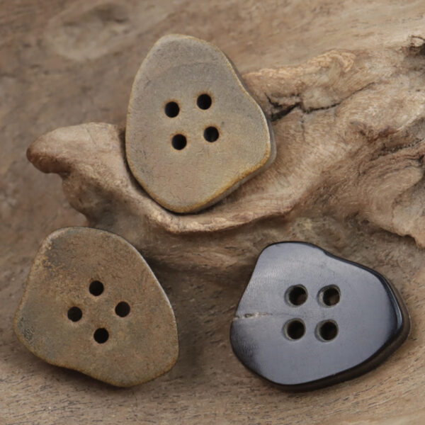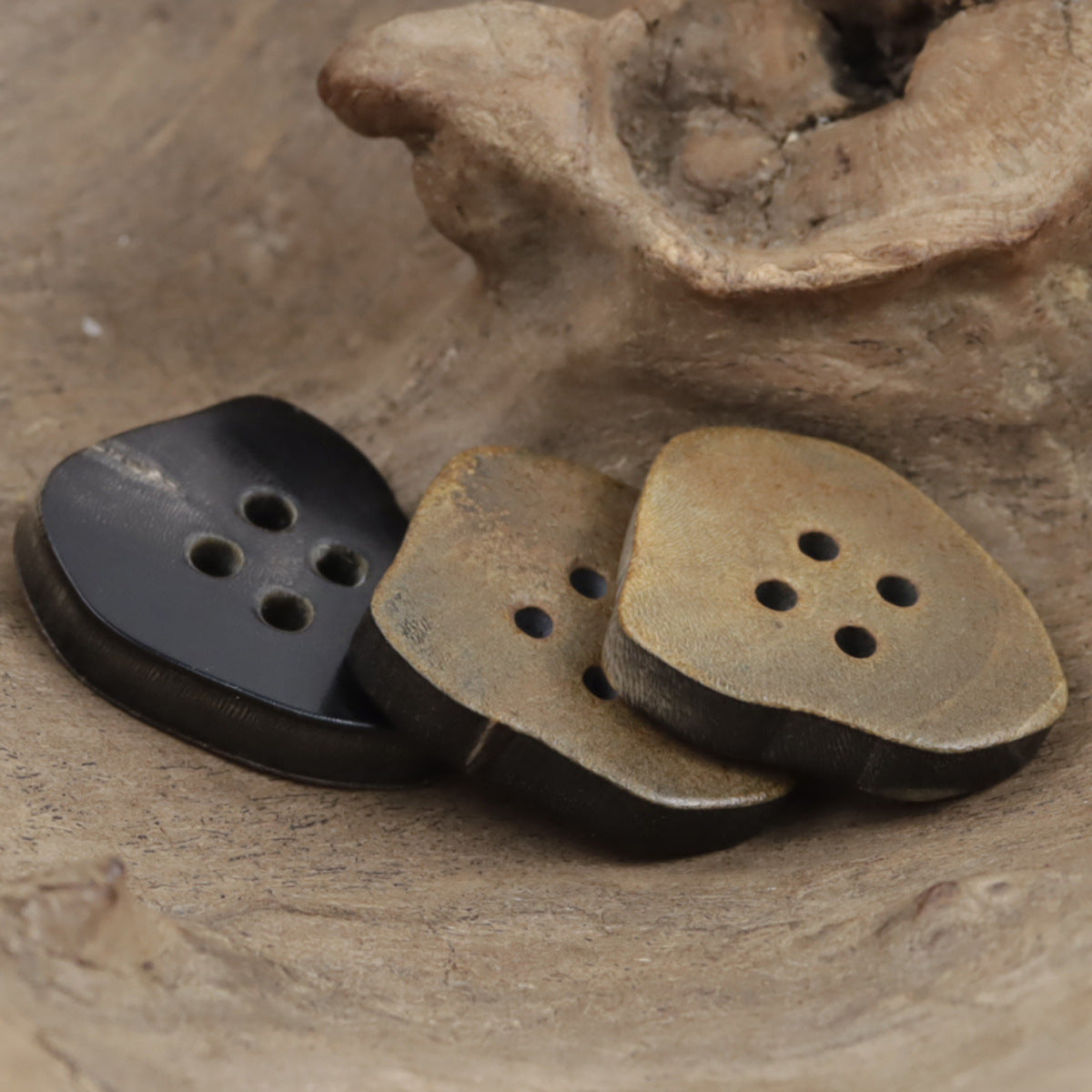 Whether you’re a fashion enthusiast looking to add a personal touch to your wardrobe or a professional tailor seeking high-quality embellishments, these irregular diamond-shaped burnished natural horn buttons are a must-have.