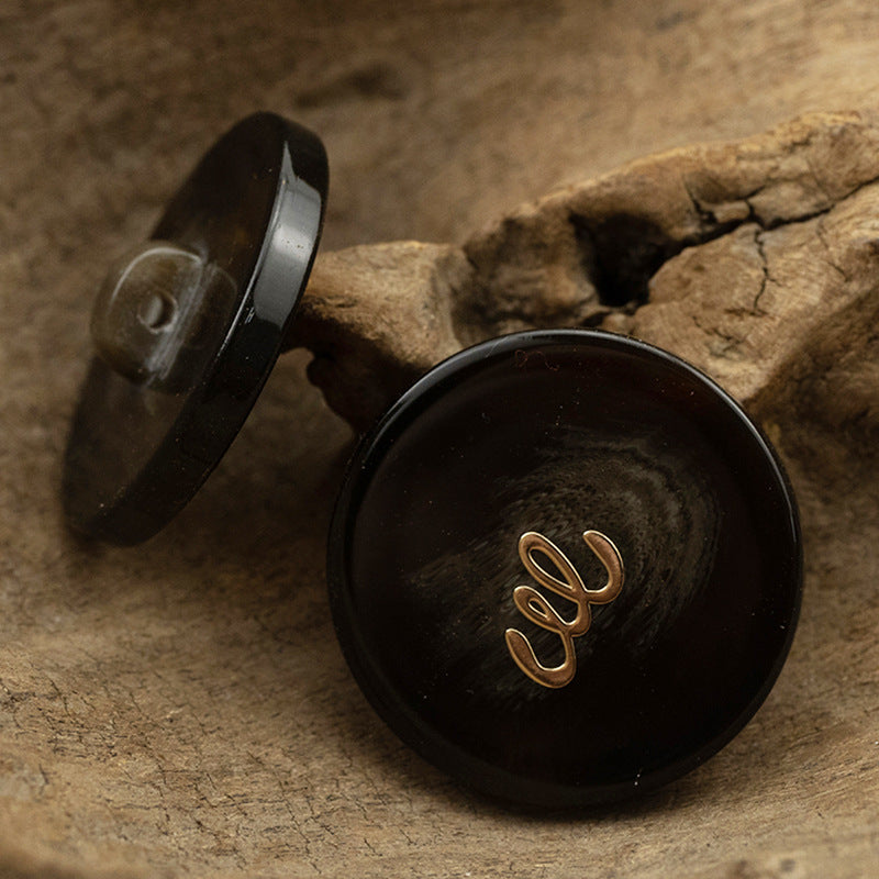 Whether you’re wearing a classic black suit or a more modern colored one, these buttons will complement your look and make you stand out. Let these khaki yellow/black-brown resin buttons with handle be the finishing touch to your luxury suit trousers.