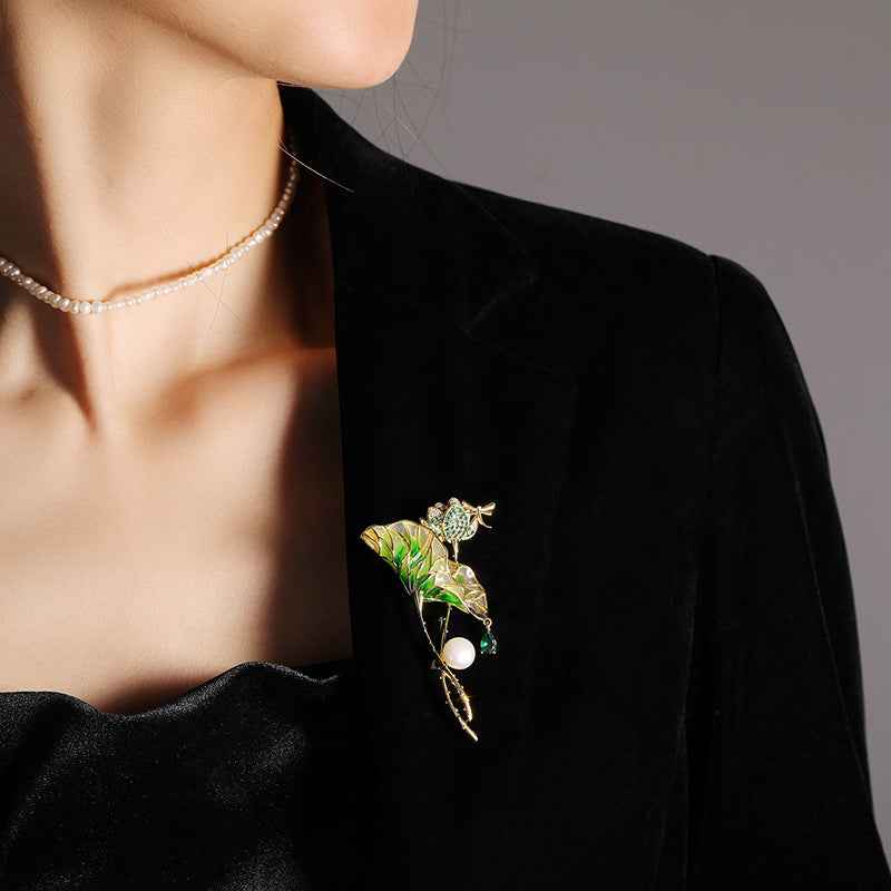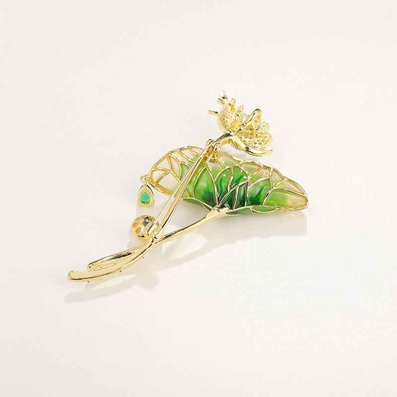 Add a touch of nature-inspired elegance to your outfit with our Light Green Enamel Lotus Leaf Waterdrop Zircon Brooch Pin. This exquisite piece features a delicate lotus leaf design, crafted with soft green enamel and adorned with a sparkling zircon waterdrop for a luxurious finish. Perfect for accessorizing blouses, jackets, scarves, or hats, this brooch is a versatile addition to any wardrobe. Its secure pin back ensures easy and comfortable wear, making it ideal for both casual and formal occasions. Whether you’re dressing up for a special event or adding a chic accent to your everyday look, this brooch is a timeless and eye-catching accessory.