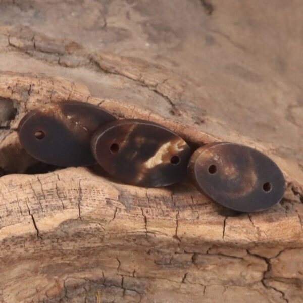 These long oval two-hole natural real ox horn buttons are an ideal choice for clothing labels, offering a combination of natural beauty and durability. Crafted from genuine ox horn, they possess a unique texture and rich color that adds an authentic and luxurious touch to any clothing item.