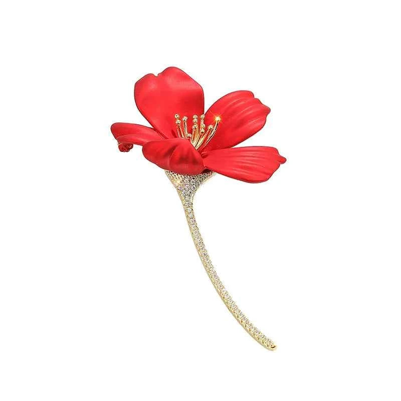 Luxury Zircon Red Hibiscus Brooch – Elegant Floral PinLuxury Zircon Red Hibiscus Brooch – Elegant Floral Pin