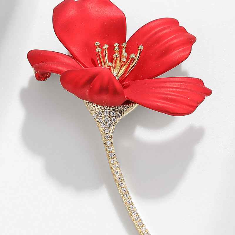 Luxury Zircon Red Hibiscus Brooch – Elegant Floral Pin