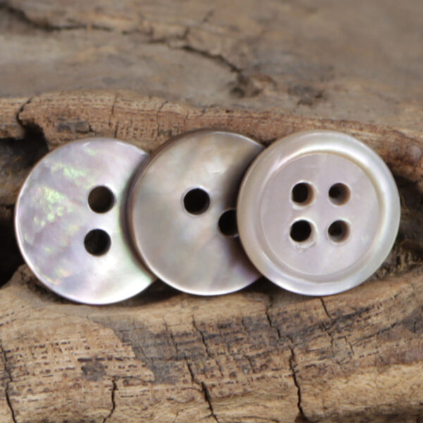 The unique iridescence of the mother-of-pearl material provides a subtle yet captivating shimmer, enhancing the overall aesthetic of any garment. With their natural origin and artisanal craftsmanship, these buttons are not only functional but also a fashionable statement piece that adds a layer of sophistication to everyday wear.