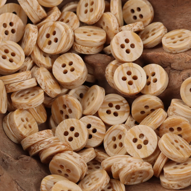 The wood grain texture gives the buttons a rustic and earthy feel, as if they were crafted from real wood. This unique texture not only adds visual interest but also a sense of authenticity and craftsmanship. Each button is like a small work of art, with its own individual wood grain pattern, making every piece of clothing adorned with them truly special.