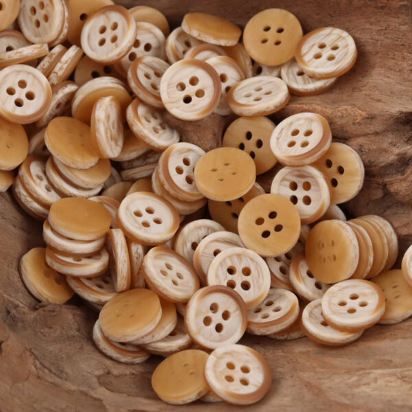 Whether it’s a sunny day at the park or a special family gathering, these orange-yellow wood grain resin buttons will make your child’s outfit stand out. They add a touch of playfulness and style, making the clothing more appealing to kids. With their combination of color, texture, and functionality, these buttons are a great addition to any child’s wardrobe, enhancing the look of their shirts, sweaters, and cardigans and bringing a smile to your little one’s face. They are a simple yet effective way to add a touch of charm and individuality to your child’s clothing, making them look cute and stylish in their own unique way.