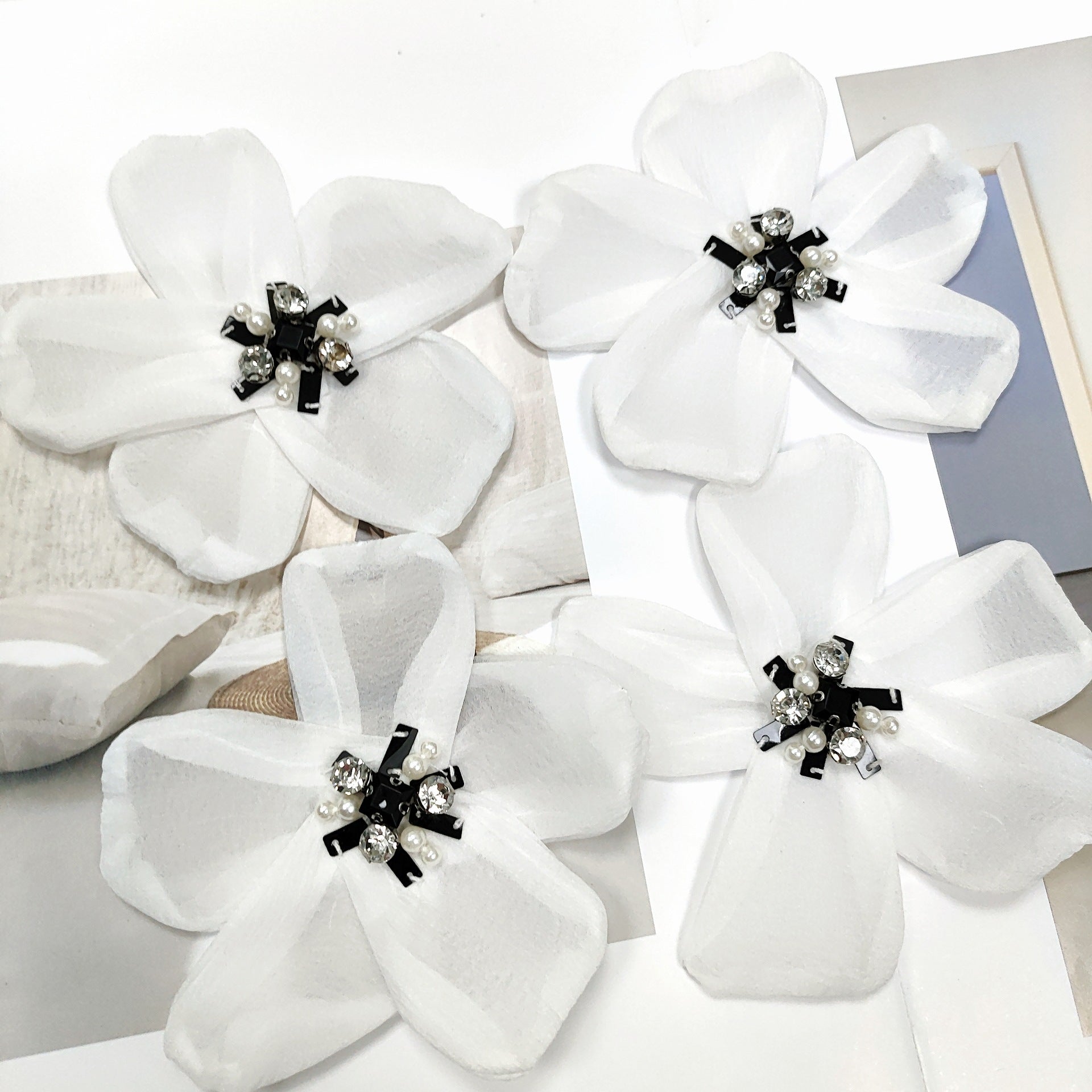 Add a touch of elegance and delicacy to your designs with this Organza White Chiffon Flower Applique! Featuring a beautiful flower design made from soft organza and chiffon, this applique is perfect for embellishing clothing, accessories, and DIY projects.