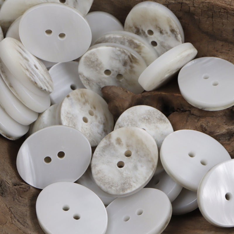 Designed with a minimalist two-hole structure, these buttons are perfect for securing your attire with ease and style. The smooth, matte finish provides a refined look that complements both classic and contemporary fashion. Ideal for adding a refined accent to suits, blazers, and knitwear, these buttons are a versatile addition to your wardrobe.