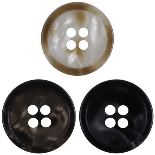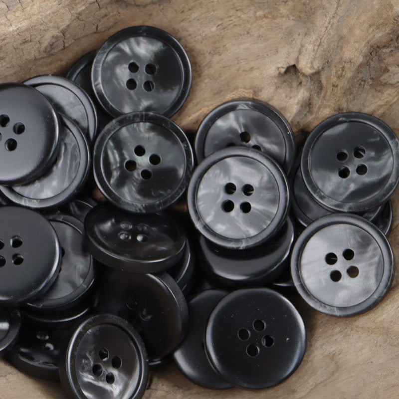 These round four-hole shimmering pattern resin buttons are a true delight for the eyes. The resin material is crafted to perfection, giving these buttons a smooth and durable finish.