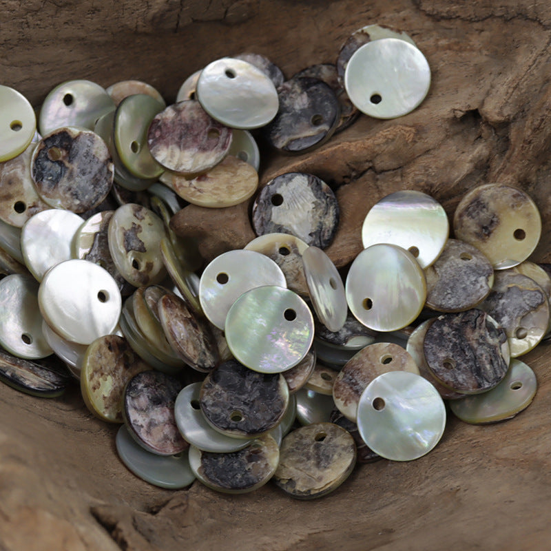 Round Single-Hole Long Natural Mabe Pearl Shell Button,10 Pack