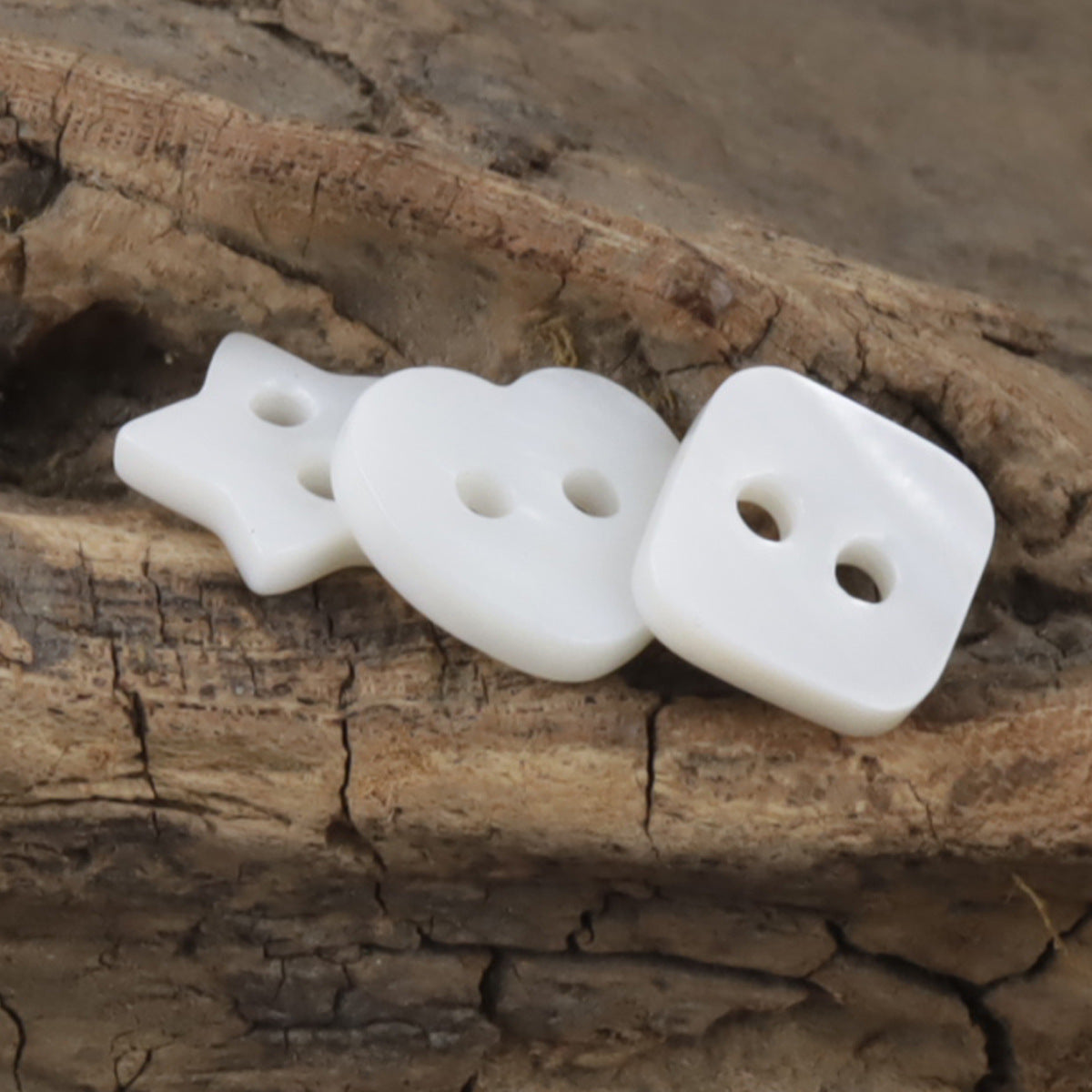 Adorn your children’s clothing with these charming square heart and star shaped natural shell buttons. These buttons are not only cute but also of high quality, made from natural shells.