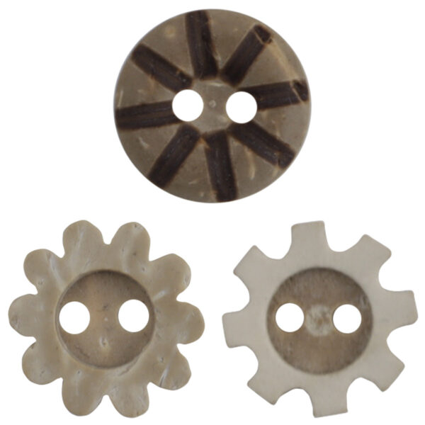 The natural texture and color of the coconut shell give these buttons a warm and earthy feel. They are lightweight and comfortable for children to wear.
