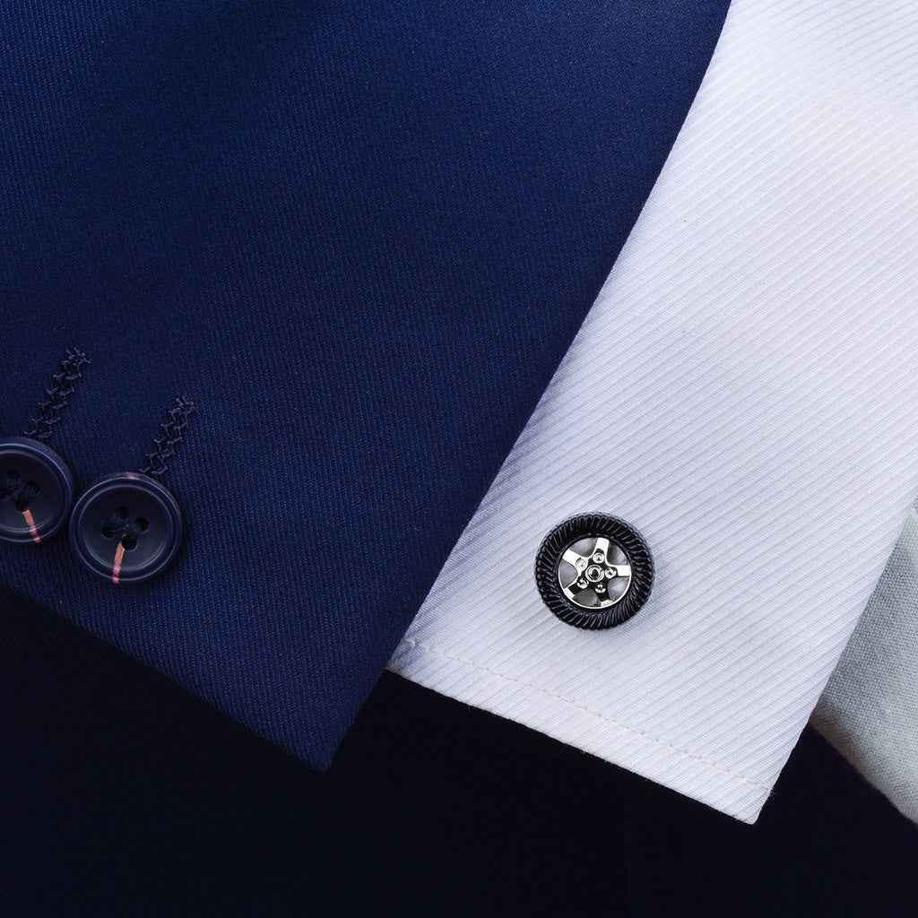 Black Enamel Tire-Shaped Cufflinks – Unique Automotive-Inspired Dress Shirt Accessories