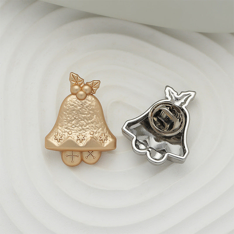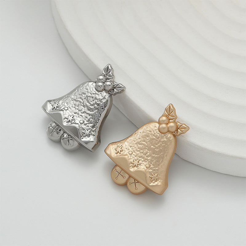 Vintage Christmas Bell Matte Gold and Silver Alloy Brooch 4pcs